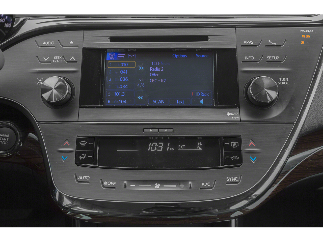 - Radio: Entune Premium Audio w/Navigation/App Suite -inc: AM/FM CD player w/MP3/WMA playback capability, Entune Multimedia Bundle, 7-inch high resolution touch-screen w/split-screen display, 9 speakers, amplifier, auxiliary audio jack, USB port w/iPod connectivity and control, advanced voice recognition, hands-free phone capability, phone book access and music streaming via Bluetooth® wireless technology, HD Radio, HD predictive traffic and doppler weather overlay, AM/FM cache radio, SiriusXM Radio w/3-month complimentary trial and Gracenotes album cover art, Integrated Backup Camera Display w/Projected Path