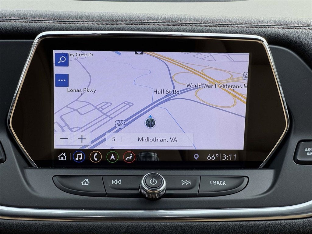 - Audio system, Chevrolet Infotainment 3 Premium system with connected Navigation, 8" diagonal HD color touchscreen, AM/FM stereo, Bluetooth® audio streaming for 2 active devices, Apple CarPlay and Android Auto capable, enhanced voice recognition, additional memory for in-vehicle apps, cloud connected personalization for select infotainment and vehicle settings. Subscription required for enhanced and connected services after trial period.