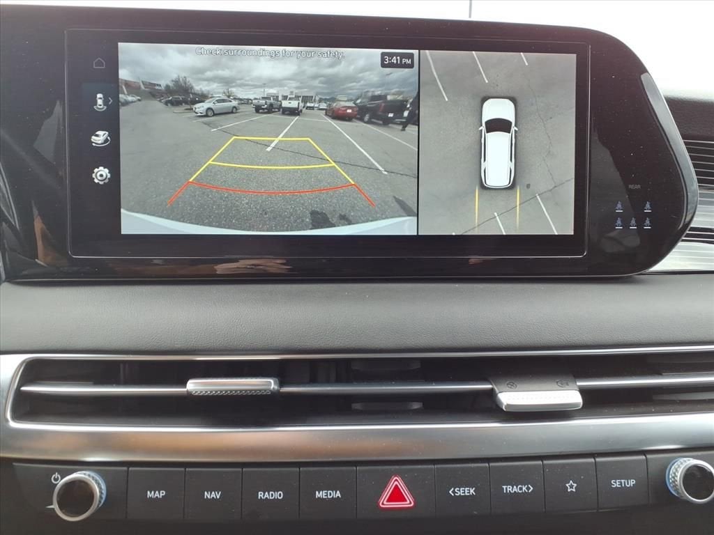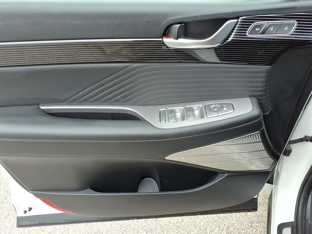 - Radio: AM/FM/MP3 Premium Audio System -inc: 630-Watts, Harman Kardon audio system w/12-speakers, Quantum Logic Surround, Clari-Fi, 12.3" color touchscreen display, onboard navigation w/traffic flow including incident data via HD Radio (HERE), Over-the-Air (OTA) map updates, SiriusXM, Android Auto and Apple CarPlay, USB, dynamic voice recognition, rear seat quiet mode, passenger talk (in-car intercom), Bluetooth® hands-free connectivity w/multiple device connection and Bluelink Connected Car System