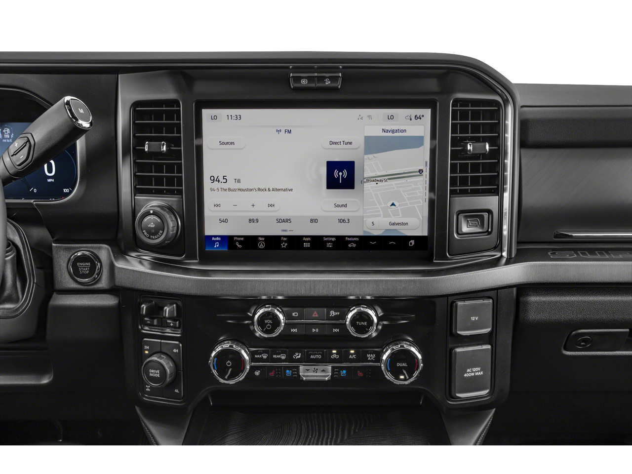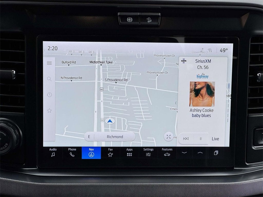 - SYNC 4 w/Enhanced Voice Recognition -inc: 12" LCD capacitive touchscreen w/swipe capability, information on demand panel, wireless phone connection, cloud connected, AppLink w/app catalog, 911 Assist, Apple CarPlay and Android Auto compatibility, digital owner's manual, conversational voice command recognition and connected navigation w/complimentary 1-year trial for eligible vehicles that begins on the new vehicle warranty start date, Customers must unlock the navigation service trial by activating the eligible vehicle w/a FordPass member account, If not subscribed by the end of the complimentary period, the connected navigation service will revert to a moving-map and active routing will no longer be available, Connected service and features depend on compatible AT&T network availability, Evolving technology/cellular networks/vehicle capability may limit functionality and prevent operation of connected features, FordPass app, compatible w/select smartphone platforms, is available via a download, Message and data rates may apply